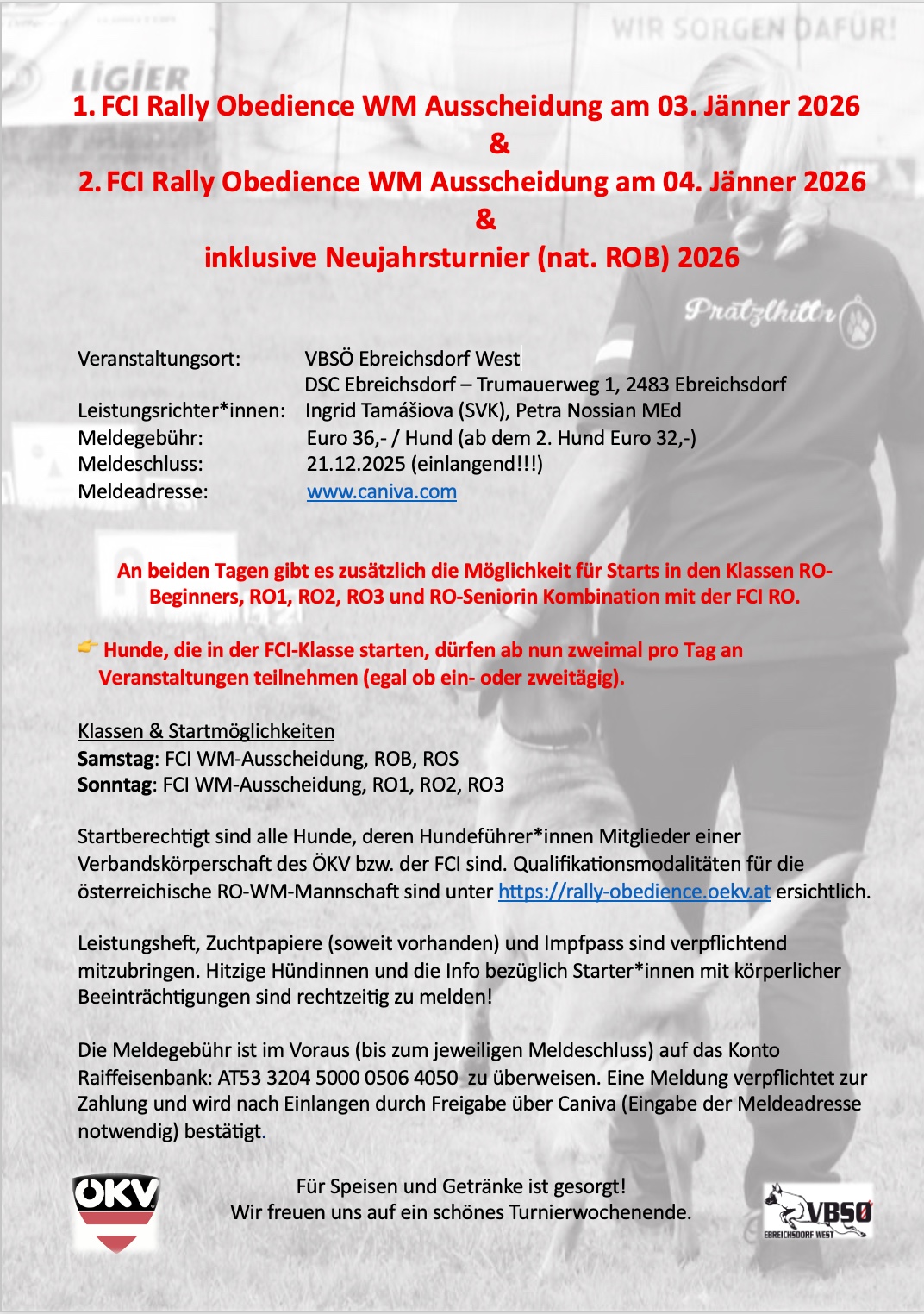 | 03.01.2026 - 04.01.2026 | 1. Ausscheidungswochende (1. & 2. WM Quali) VBSÖ Ebreichsdorf - Halle Ebreichsdorf | LR: P. Nossian & I. Tamášiová (SVK) |